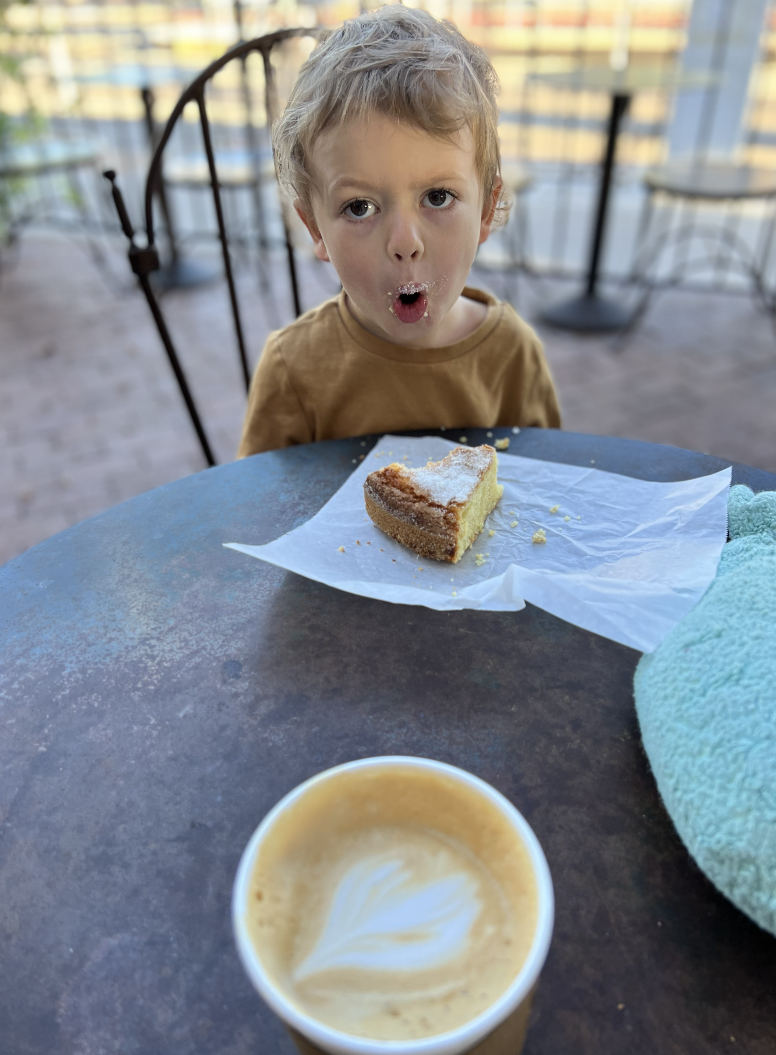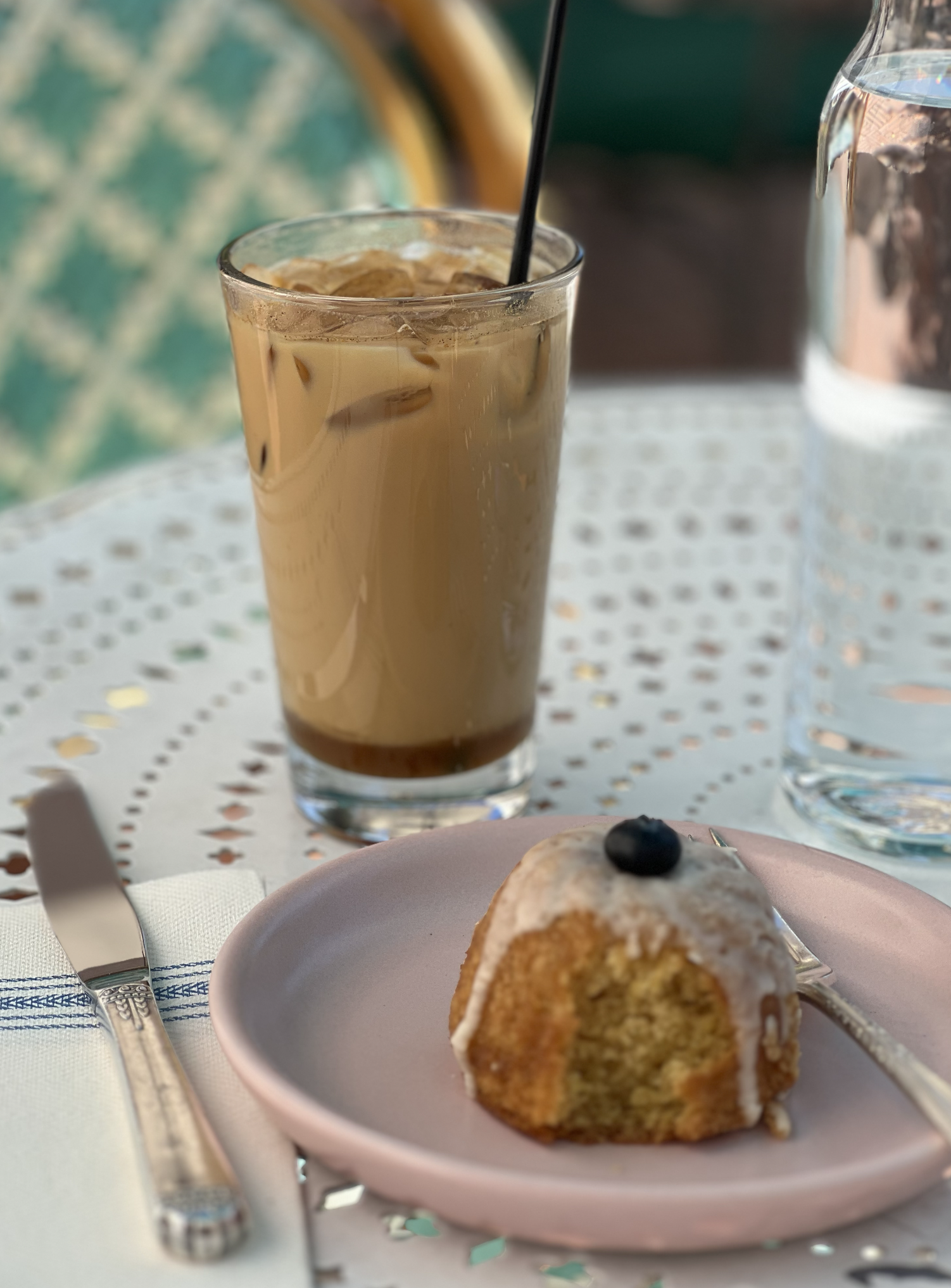Time Market, Olive Oil Cake and Oat Milk Latte